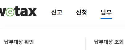 납부 > 납부대상 확인을 클릭하여 납부를 진행합니다.