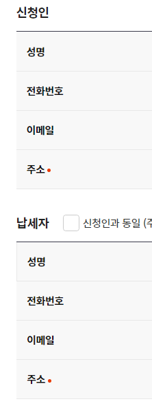 신청인, 납세자 정보를 입력합니다.