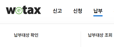 납부 - 납부대상 확인에서 세액 확인 후 납부하시면 됩니다.